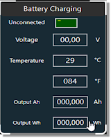conexão, tensão, temperatura, corrente, capacidade e energia.